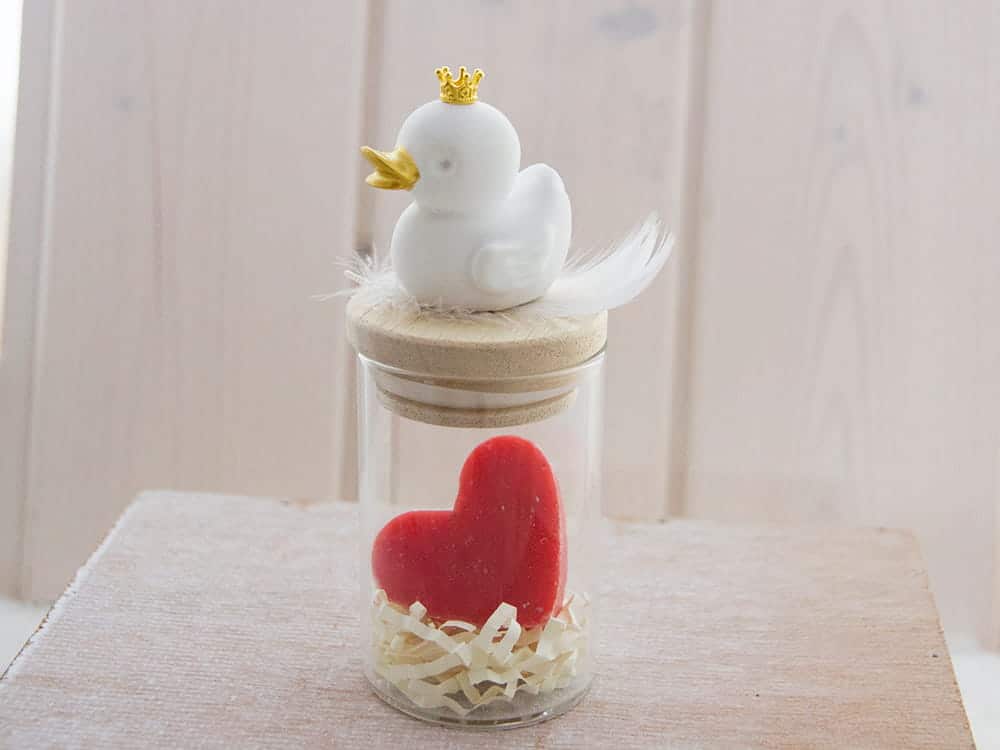 Präsentiert in einem Glasgefäß und verziert mit einer niedlichen Deko-Ente, wird sie zum besonderen Blickfang.